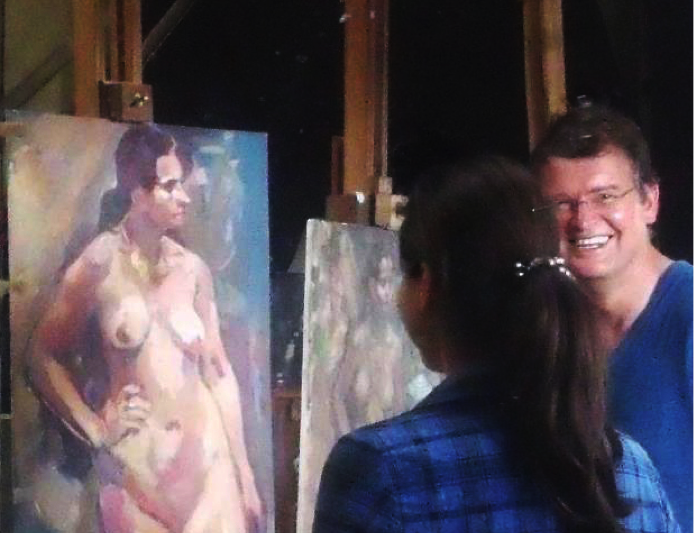 Charles believes that life drawing, painting and portraiture never loss their appeal – what a privilege. He feels that he tries to simply respond to the challenge of representing the person sitting for me in an honest and colourful way.